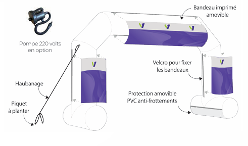 Arche gonflable étanche en PVC 680 g/m² – Publicité professionnelle avec option bandeaux amovibles