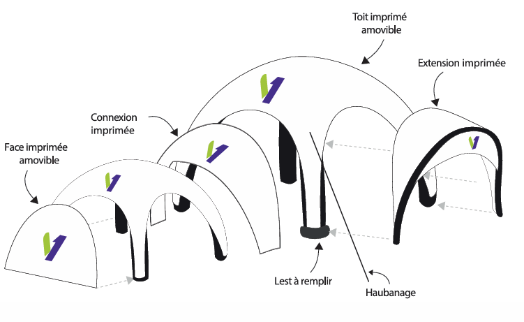 Il permet de créer une extension abritée supplémentaire (zone d’accueil, d’exposition ou de détente) tout en offrant une surface personnalisable en sublimation HD pour maximiser la visibilité de votre marque.