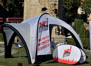 L’auvent imprimé est un accessoire modulable qui vient compléter les tentes gonflables X Roof 2 et Event Roof.