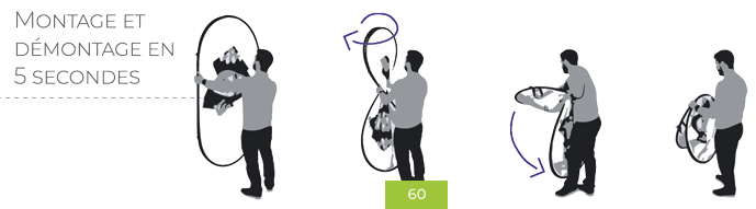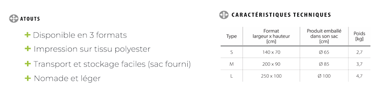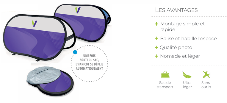 La barrière Pop-Up est une structure textile souple qui se déploie en quelques secondes comme une tente de camping. Ultra légère, elle se plie à plat, se range dans une pochette ronde, et peut être utilisée en intérieur ou extérieur couvert. Son visuel textile recto/verso permet une communication percutante sur les deux faces.