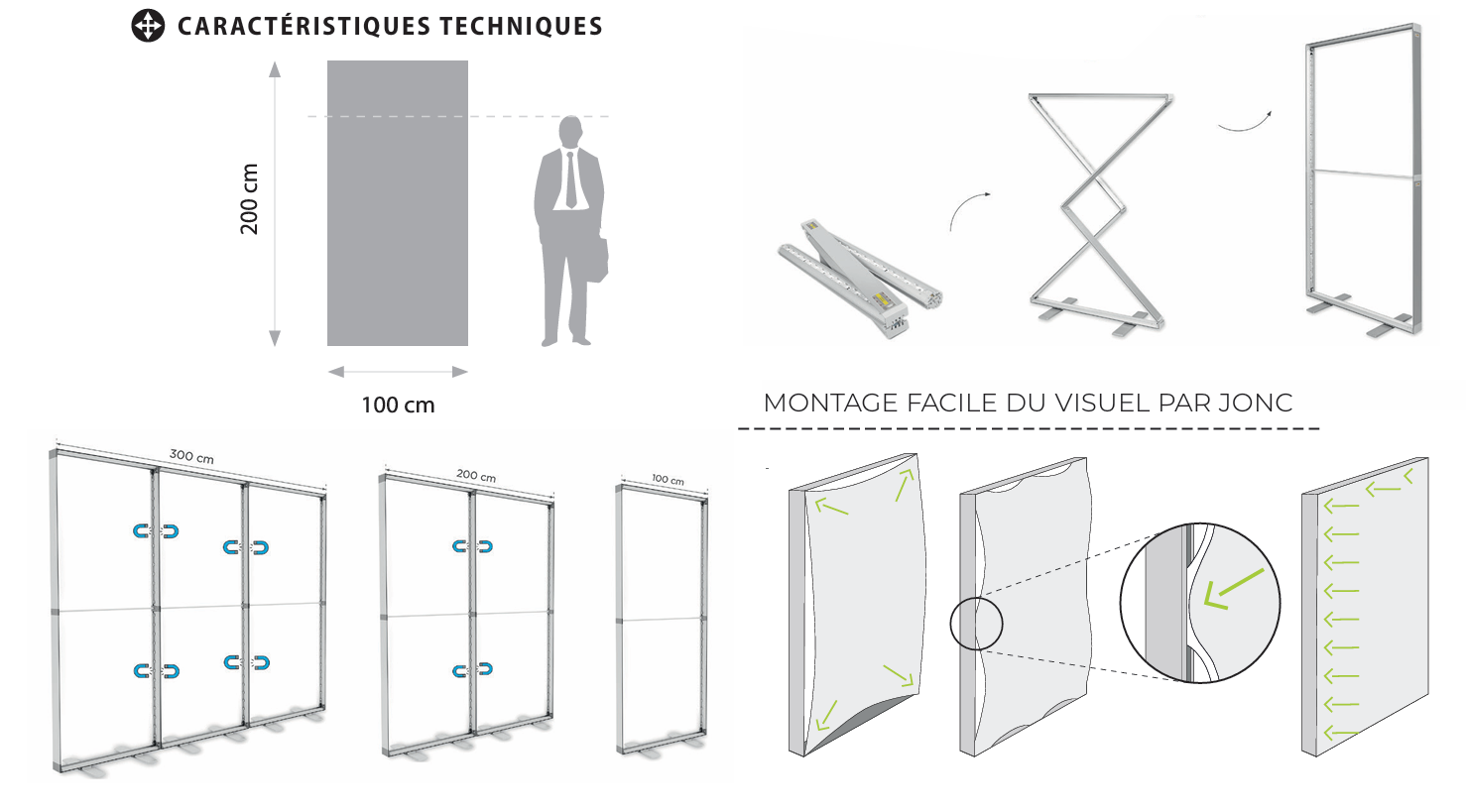 Le Cadre LED 100 pliant est une solution de communication visuelle haut de gamme, alliant impact visuel, mobilité et rapidité d’installation. Conçu pour les professionnels en déplacement, ce caisson lumineux textile est pliable, léger et livré avec tout le nécessaire pour un montage rapide, sans outil.
