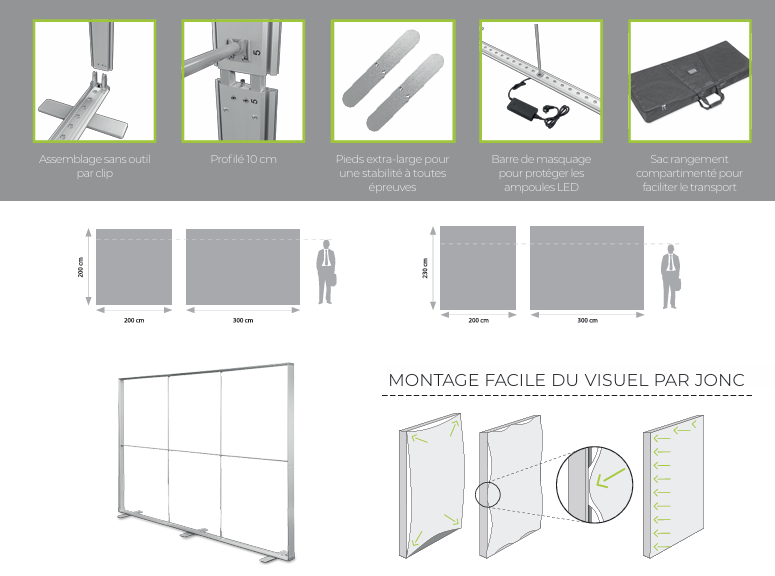 Le Cadre LED Expo est une solution haut de gamme pour concevoir des stands d’exposition modulaires rétroéclairés, parfaits pour les salons professionnels, foires, congrès et événements. Grâce à leur structure aluminium 120 mm et leur éclairage LED intégré, ces cadres offrent un rendu visuel saisissant, tout en restant faciles à transporter et à monter.