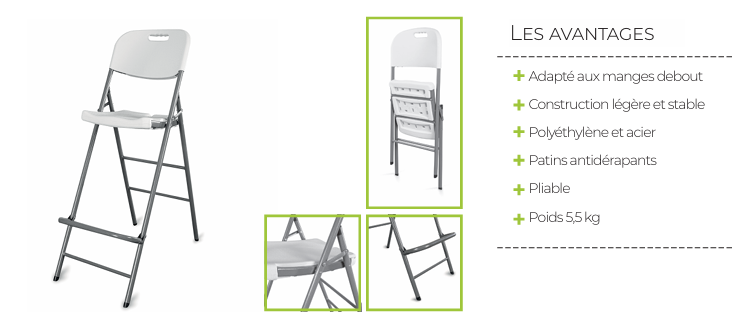 Chaise pliante haute – Tabouret pliant pratique pour bar & événementiel