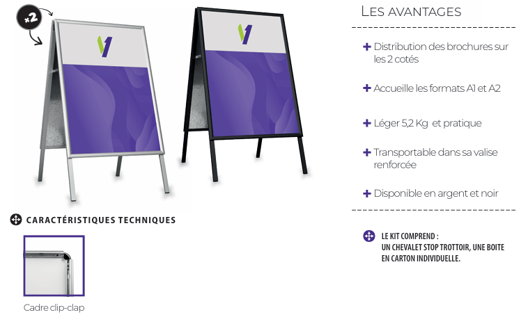 Le chevalet en aluminium est une solution d’affichage pratique et soignée pour signaler une offre, diriger vos visiteurs ou présenter vos visuels promotionnels.