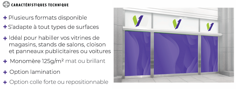 Monomère : pour surfaces planes (vitrines, panneaux)