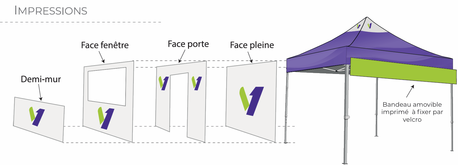 Le mur avec porte imprimé Nomad’O est un accessoire indispensable pour compléter votre tente pliante professionnelle Nomad’O. Conçu en polyester 300 g/m² imperméable et anti-UV, il offre une protection optimale contre la pluie, le vent et le soleil, tout en mettant en avant votre identité visuelle grâce à une impression sublimation quadri haute définition.