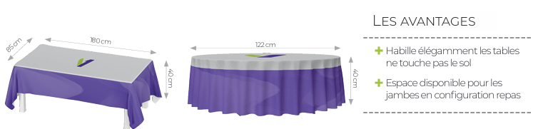 Habillez vos tables d’événement avec style grâce à des nappes personnalisées, transformant chaque surface en un support de communication visuelle.