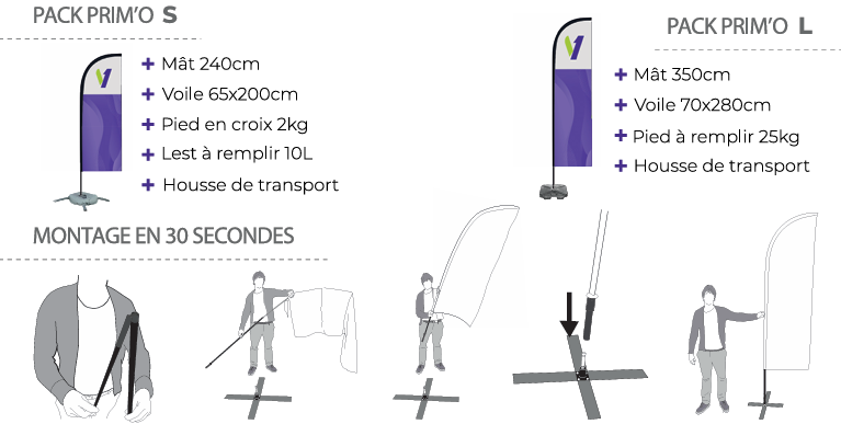 Pack Beachflag Prim’O – La solution économique tout-en-un, avec mât de qualité professionnelle