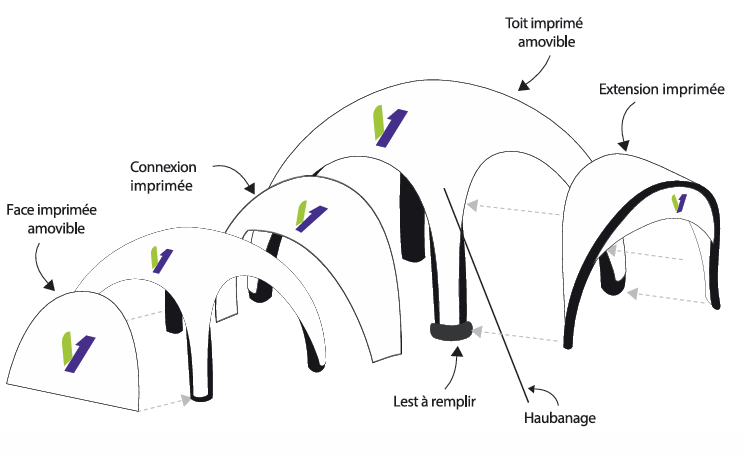 La tente gonflable X Roof 2 est un abri événementiel haut de gamme, conçu pour une utilisation intensive en extérieur. Sa structure à air captif (sans soufflerie permanente) et son système de gonflage One Pump permettent un montage rapide en moins de 10 minutes, sans outil.
