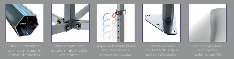 Ce modèle premium est destiné aux professionnels exigeants qui recherchent à la fois solidité, visibilité maximale et durabilité pour leurs événements, salons, marchés et installations semi-permanentes.