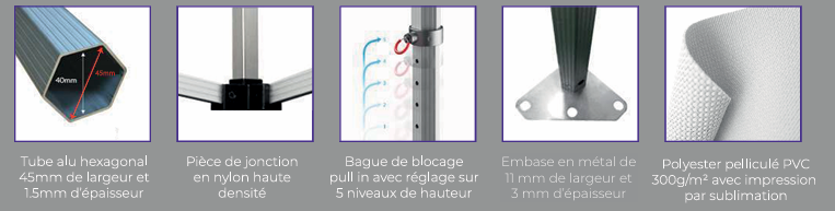 - Toile résistante aux intempéries : Garantissant un abri sûr pour vos produits et visiteurs.