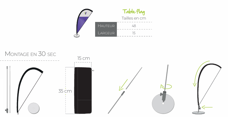 Drapeau de table publicitaire – Support compact et personnalisable