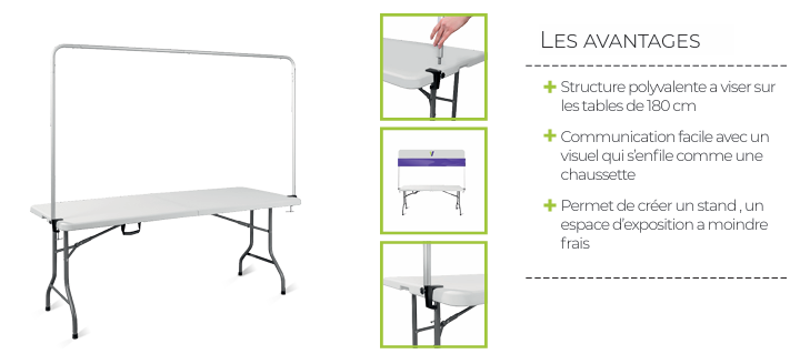 Un système ingénieux pour transformer une simple table PEHD en stand événementiel complet