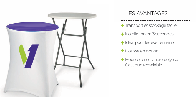 Table mange-debout avec housse imprimée – Mobilier événementiel personnalisé