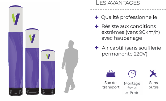 Le totem gonflable Event est conçu pour offrir une visibilité maximale lors de vos événements, salons ou opérations promotionnelles.
