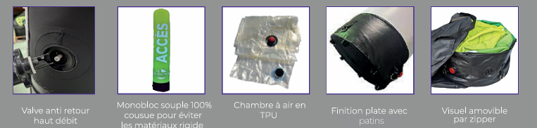 Fabriqué en matériaux résistants avec chambre à air en TPU et finition plate avec patins, il garantit une stabilité et une durabilité optimales.
