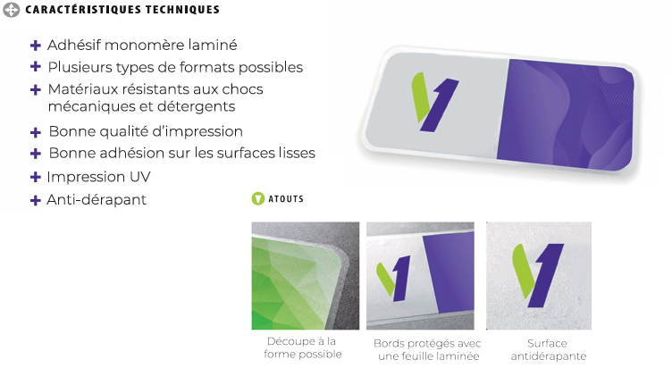 ✔ Impression quadri haute définition sur différents types d’adhésifs :